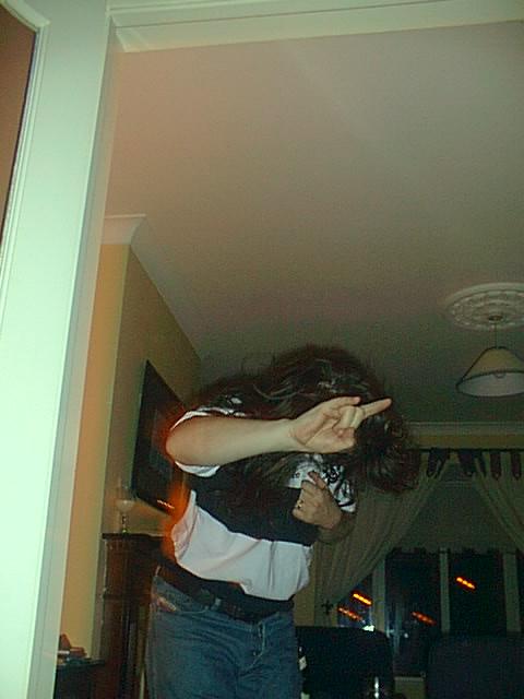 Either a guitar pose, or he's concentrating hard.
