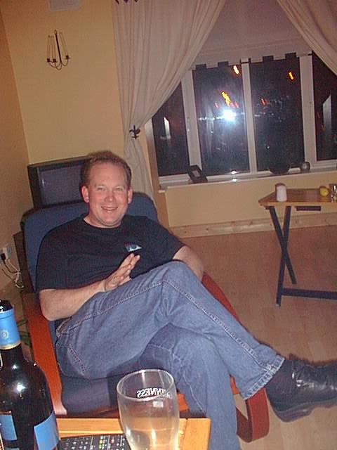 Mr. Hayes enjoys a beer.