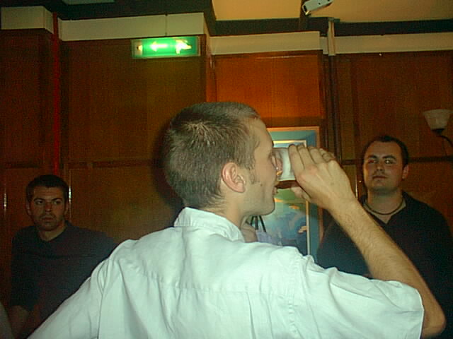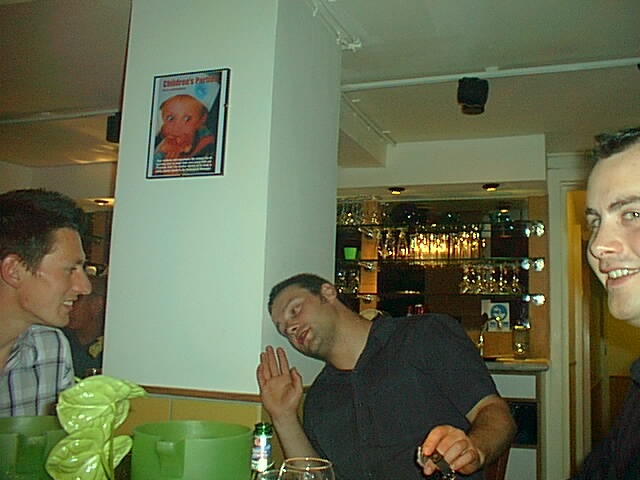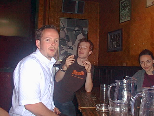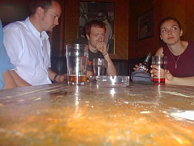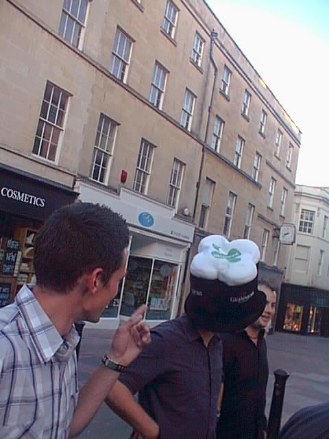 Well... we left the house sometime at dawn cluthing a bottle of stella for that vital getting back to B&B energy. Tried to ring a cab, but no response, we had to walk. So, while wandering in the general direction of Bath (or at least we thought we were) I decided to ask a passer by if we were going in the right direction. The passer by was this blonde woman (who's name i forget) who had just come from baby sitting and was on the way to a party. So as she was 'going our way', as in we were walking the wrong way, we escorted her in the direction of bath. While chatting she asked if we wanted to come to this party, and if she could have some of whatever we were on. She was dissapointed to find it was only stella, but anyway we crashed the party, hung about for 10 minutes, realised we were way to fscked for this. We finaly got a taxi number from a helpful 24hr garage attendant, 15 minutes later, somewere on the outskirts of bath. Then taxied to the B&B.