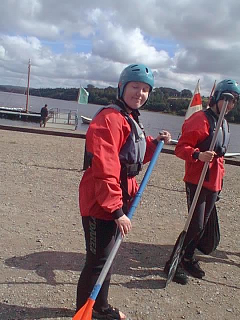 Kathryn with her paddle. Dave's hiding behind his.