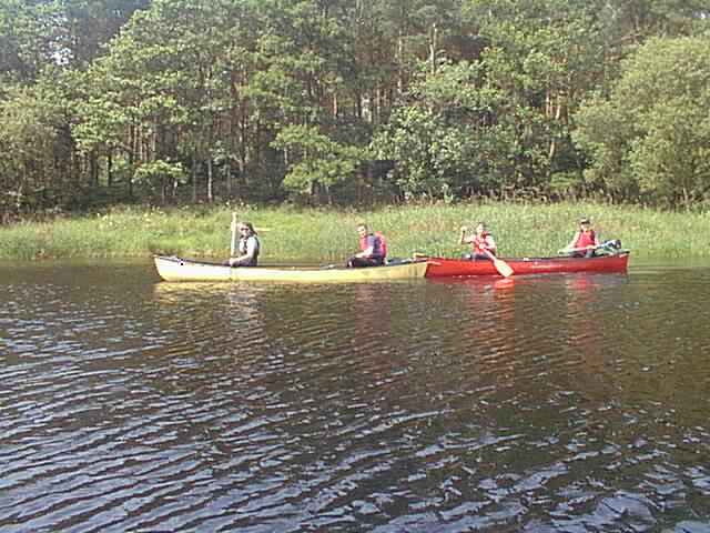 The merrie bande of loonies. I'm in the yellow canoe, at the back.