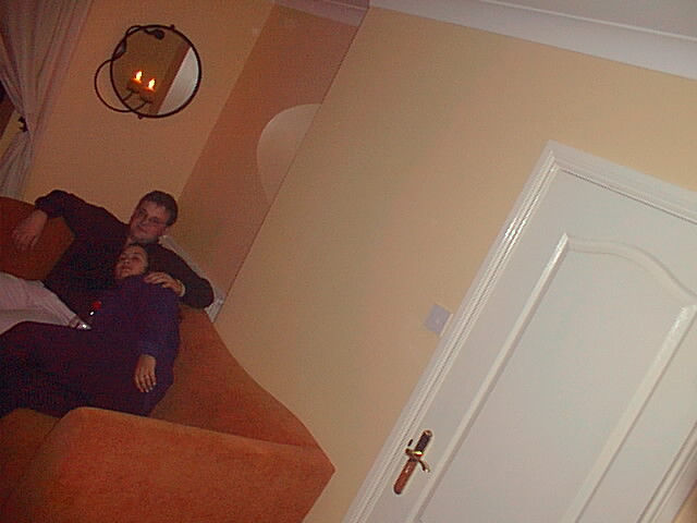 Alan and Megan chill out on the sofa.