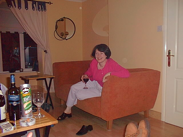 Mrs. Hayes enjoys a wine.