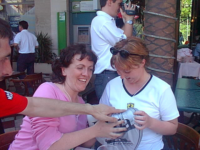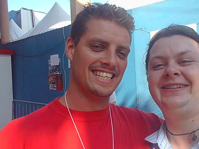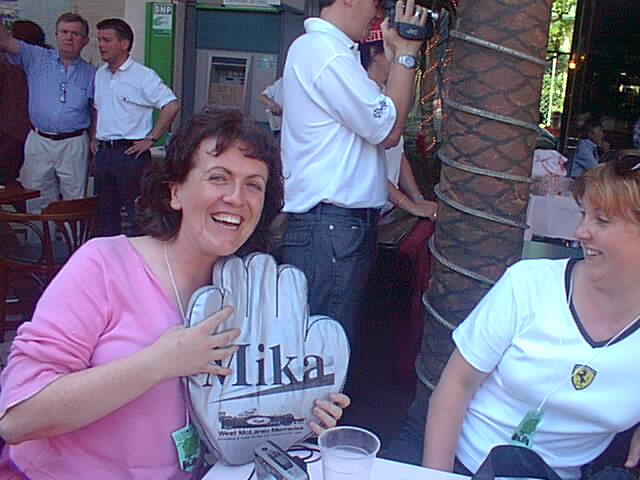 That's me dancing with a crazy woman with a Jaguar flag after Eddie Irvine brought his Jag home in third.