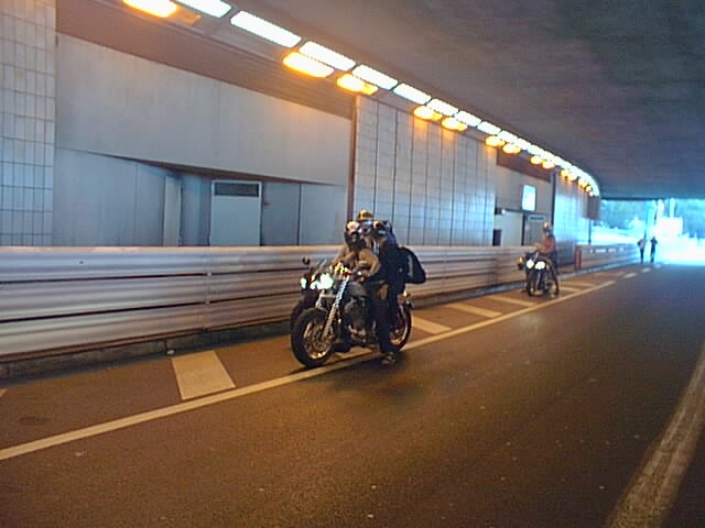 Some bikers play in the tunnel.