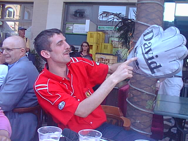 Wayne mocks David Coulthard. Or the inflatable hand, maybe.