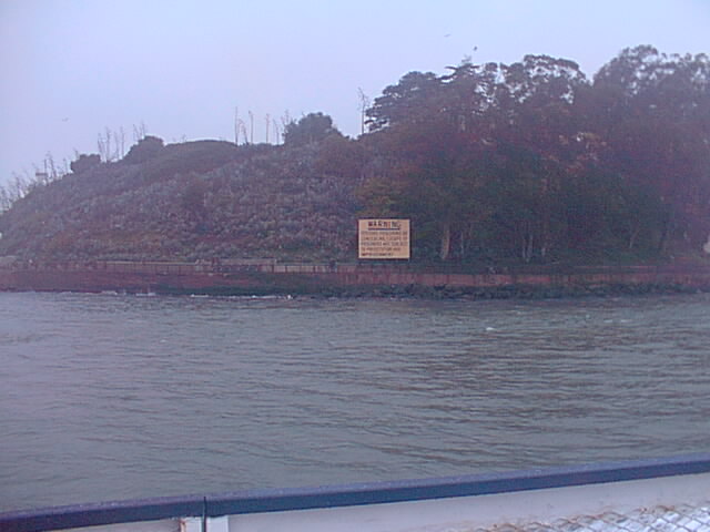 As we left, I took a few more photos; the main Alacatraz dock, a sign which basically said, "don't help people escape!" - which is out of focus, dammit - and an overall view of the island itself. If it had been a nicer day, I'd have probably explored some more, and definitely taken more photos. So I guess that's something to do the next time I'm there.