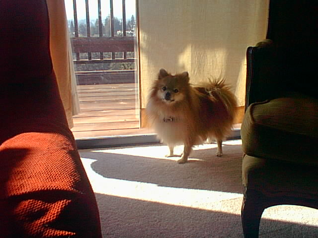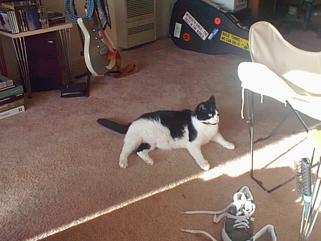 I didn't get up at any sort of a reasonable hour, and Meredith and I pretty much spent the entire morning vegetating (hey, this is my vacation, right?). I took photos of both Daddyo and Iceberg. We phoned out for pizza at some point, then eventually it was time for me to go to the airport. Meredith drove me there, depositing me at the new International Terminal which had been opened while I was staying in SF. It's pretty nice, but the fact that they've only recently moved everyone there means that there are these long stretches of abandoned desks in the old International area with laser-printed signs directing you to the new desks. I dropped off my rentaphone and then wandered around for a while looking for some facilities that didn't require me to have checked in. There were none, unless you want to call a half-assed coffee bar a "facility".