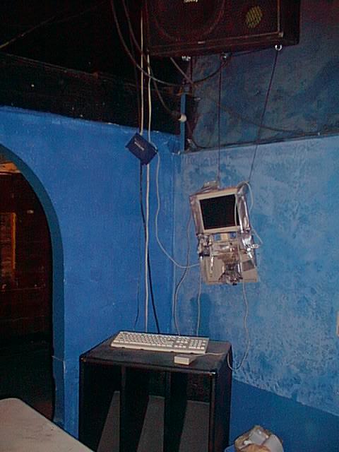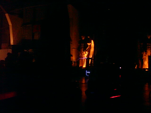 Inside, various Amazon-type women (the race, not the online retailer) were wandering around in various latex outfits. Silly me, left my camera back in the hotel. Søren took a few photos during the fashion show part of the party, but they're mostly too arty (read: blurred) for you to see any detail. You can check out Søren's photos for yourself if you want to see what I'm talking about - unfortunately there's only three from the party. Doh!. We quickly used our Irish wiles to (a) jump the bar queue; (b) take over the bar; (c) get chatted up; (d) get other people to buy us drink. And so forth. I'm not kidding about the bar, either. The barman asked Donal, out of all the people there, to watch the bar while he (the barman) answered nature's call. Which reminds me, when I went in search of the facilites myself, I eventually found myself in a room illuminated by a six-pointed star made of traffic cones with a lightbulb at the centre. The guy ahead of me in the queue said that there were two girls in the bathroom - which fact I had determined from the sounds emerging from the tiny room - but they should be out shortly. Man. I always wanted to go to this sort of party. Apparently the same two girls were providing some, uh, unintentional entertainment later on out in the main party area, but I was distracted by beer or something and failed to notice. That or they were being far more discreet than Søren let on!