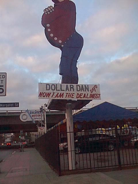 We drove around SJ a litte, partly looking for a gas station and somewhere to get some decent food, and partly just wandering. We passed Dollar Dan's place, which is apparently some sort of local landmark, and eventually wound our way - via a milkshake stand - onto I80 and headed for SF.