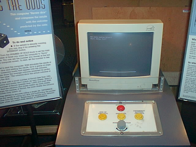 We headed back down towards Fisherman's Wharf again, and this time I pointed out the guy behind the bushes before he jumped out and surprised us. He wasn't amused... As we continued on, we looked back and saw him catching someone else out, so I guess that was okay. We continued walking through the Fort Mason area and up along the inshore part of Marina until we got to the Exploratorium, which I'd told John and Hilary about, and this time I was determined to cover all the stuff I'd missed the first time around. With that in mind, I headed around in the opposited direction to the way I'd gone last time, which led me to all the fun toys in the upstairs section. Including this classic from the pre-Windows era: Kids, don't do DOS!.