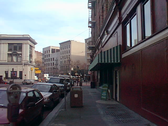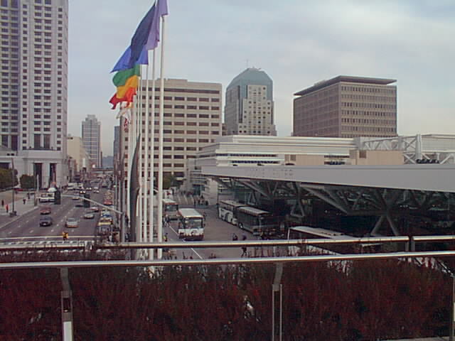 First problem: I didn't have enough cash on me for the BART. So I strode boldly back out of the station in search of a cashpoint. Heck, I'm in Berkeley, it's filled with students, it should be overflowing with cash machines, right? You'd think, anyway. After walking a couple of blocks, I found a place advertising cash-via-Visa card, which is my chosen MO, and proceeded to go through the song-and-dance routine with the guy behind the counter. Lo and behold, the damned machine didn't understand my You-Ro-Pee-En Visa card, so I had to walk a couple of blocks the other way until I located an actual bank which had a Visa-friendly machine out front. Phew. Back to BART, this time it likes my paper money, and off into town.