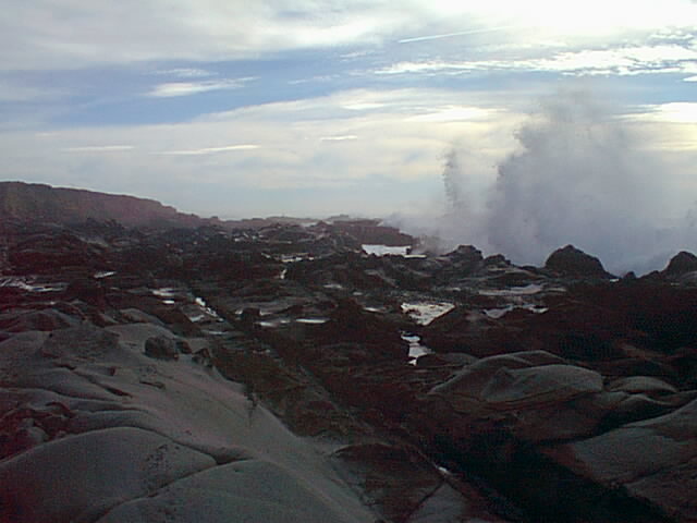 After our martian excursion, we wandered further up the highway to another beach where we launched into the picnic. Fizgig insisted on being hand-fed scraps from whatever we were eating, which he then proceeded to drop in the sand, rendering them inedible. Good doggie! Once I'd eaten my fill, I took Fizgig for a dash across the beach and back again. I must admit, there's a lot to be said for a part of the planet where you can go on a beach picnic in mid-December without pulling out the thermal underwear.