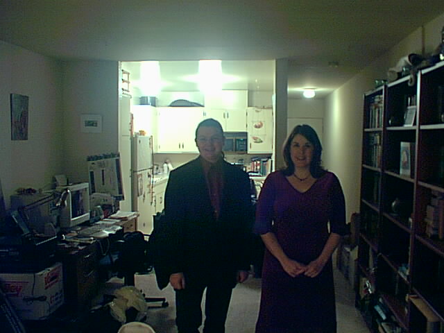 Meredith had left a "where the hell are you?" message or two on the phone, so I called her back to tell her we were on the way and hoped to make it to her place in good time. Of course, I'd reckoned without the traffic on the Golden Gate bridge, particularly since they'd shut down a lane for fun on the inbound side. We got to Meredith's place where I disappeared into a convenient phone booth, did that high-speed-blurred-spin-around thing, and came out as Meredith's smartly-dressed companion. ShaZAM!. Donal took a picture of the two of us kitted out for our evening and we hit the road.