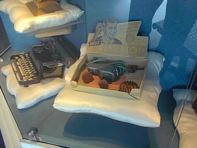 Having been evicted from the Exploratorium, we went in search of an eaterie/relaxerie. Meredith proceeded to direct us to various places, all of which turned out to have gone out of business! Eventually we settled on Hamburger Mary's, a mere hop and a skip from the DNA Lounge, and had a few brewskis. I gotta say, the Guinness was pretty damn good. Donal had one of the local brews, as did Meredith. The place was decorated with all manner of kitsch stuff, including a 50's-style chrome toaster attached slots-out to one wall, and a urinal by the bar with a photo of Liberace in it. Oh, and a christmas tree decorated with tinsel and ... high heeled shoes. No kidding. A sign on the door noted that the place was gay/straight/bi-friendly, and Meredith swears I could have walked off with any of the (male) serving staff. I was most amused to find that there was a sign over the gents' toilets saying "Pick-Up Zone", and the free postcards rack included a Toblerone one which read, "Better than sex. Peaks seven times.". We had burgers here, as you'd expect in a joint called "Hamburger Mary's", and a few beers, and then Meredith headed for home while Donal and I checked into a hotel for the night.